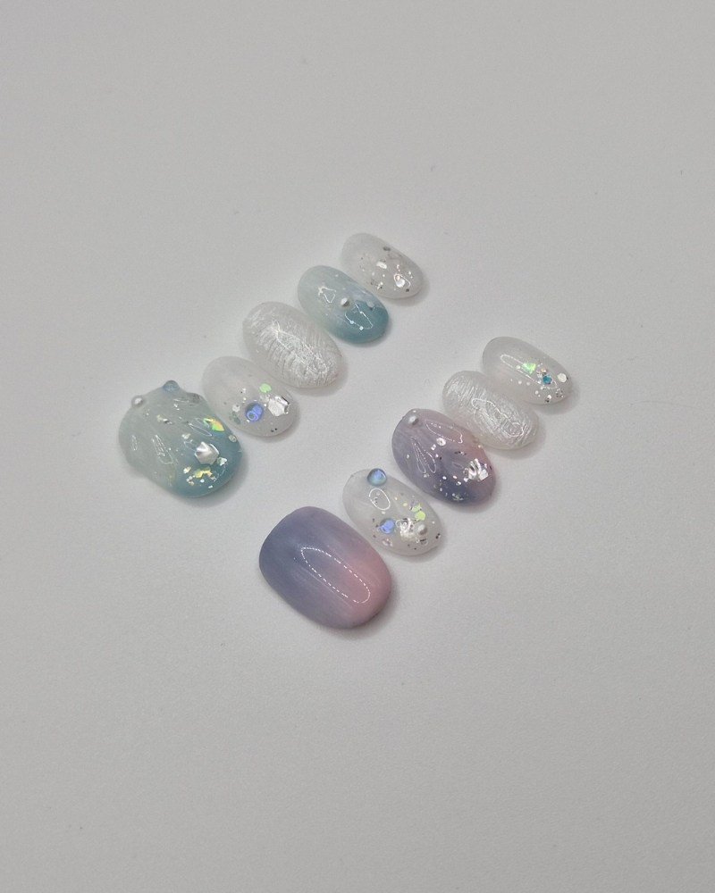 A tranquil blend of lilac, pink, aqua, and white with layered 3D textures for a soft, dimensional finish. Balanced and serene, this design has a refined sense of calm.