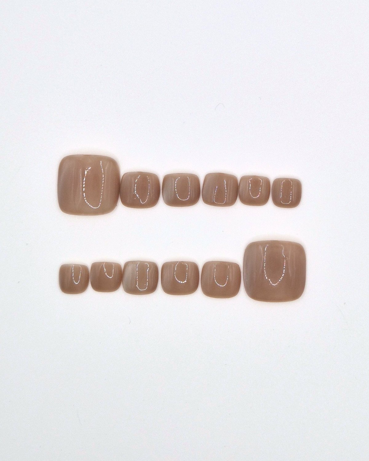 Soft beige tones with a subtle cat-eye sheen create a smooth, natural look with gentle light movement. The finish sits beautifully on toe nails, giving a polished, understated glow that feels clean and effortless.