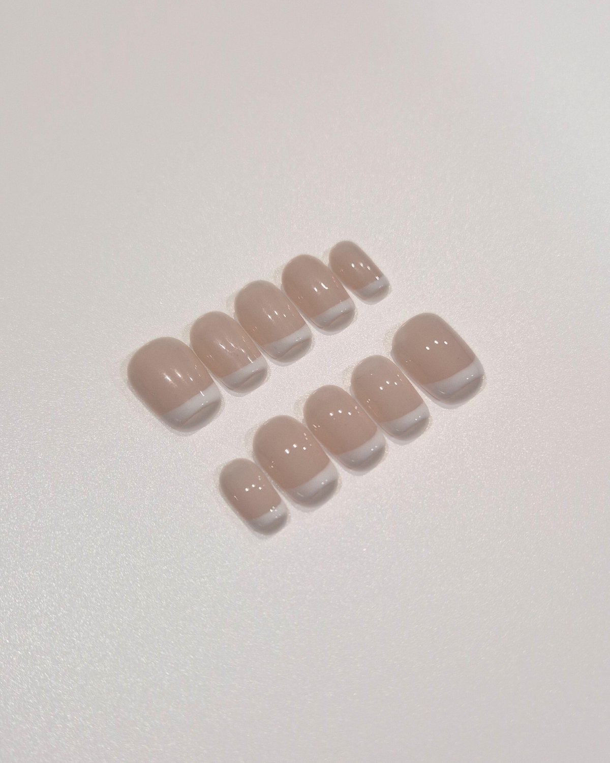 • Soft pink base with hand-painted white tips