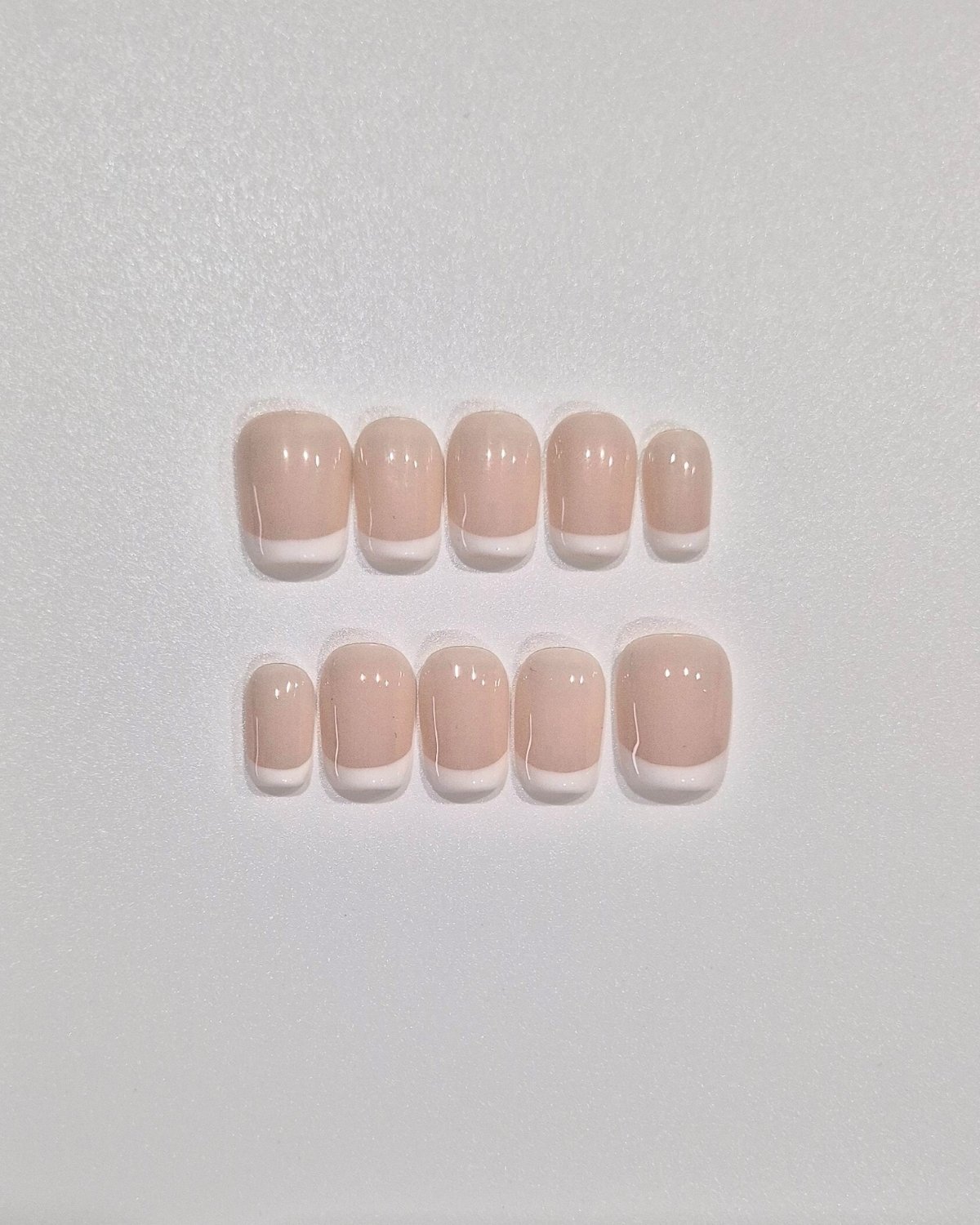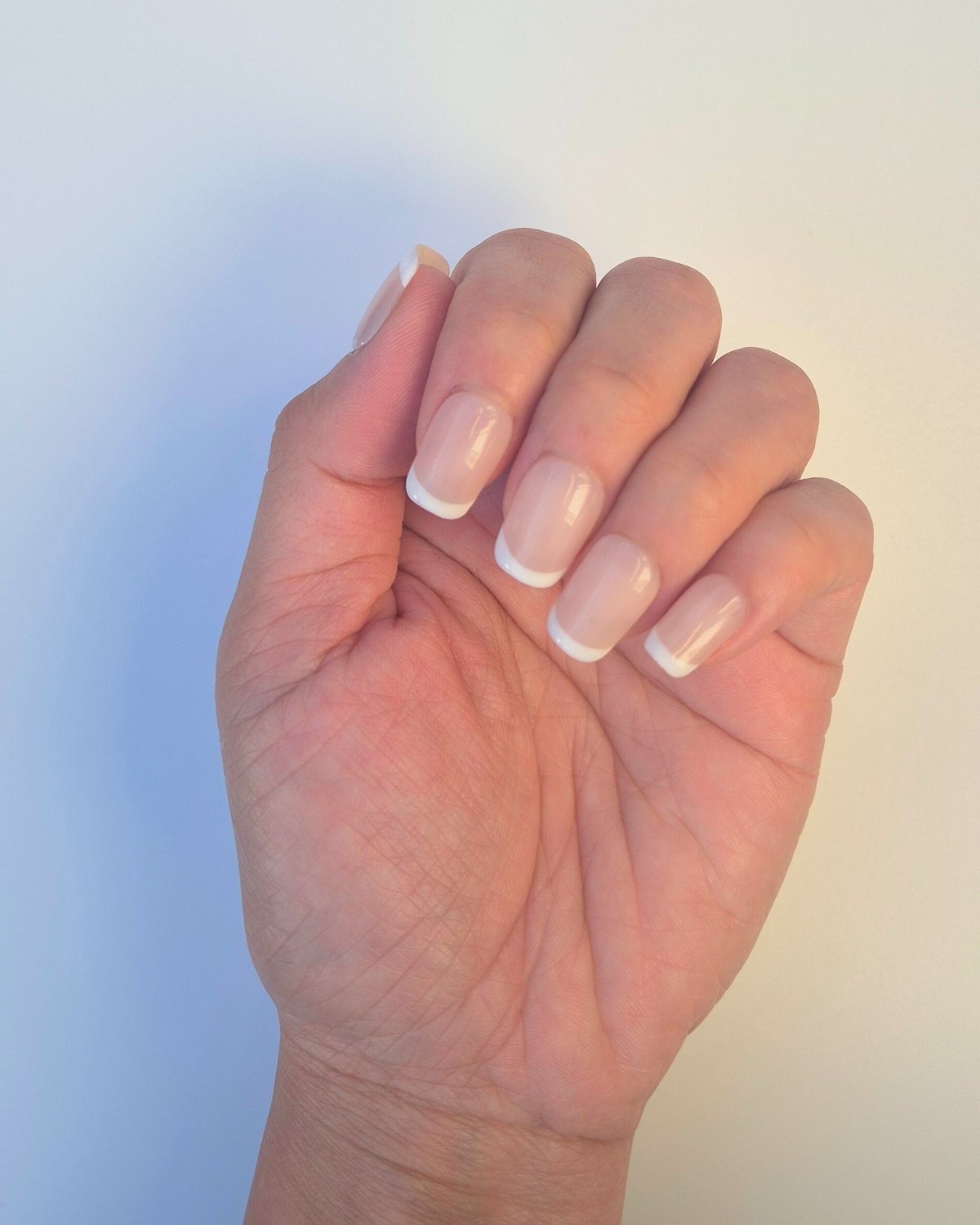 A classic French manicure with a soft pink base. Hand-painted with clean white tips for a precise, polished look that feels refined and timeless.