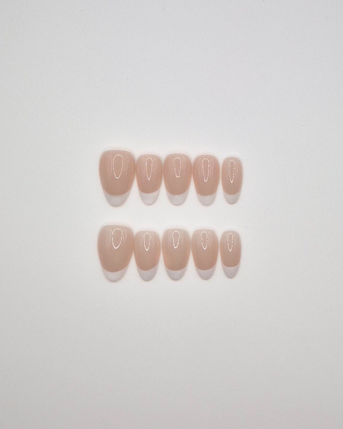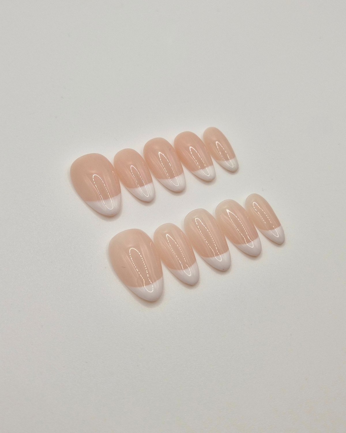 A classic French manicure with a soft pink base and crisp white tips. Hand-painted for a clean, balanced finish that feels timeless and refined.